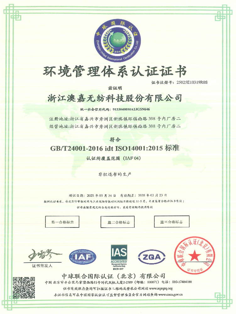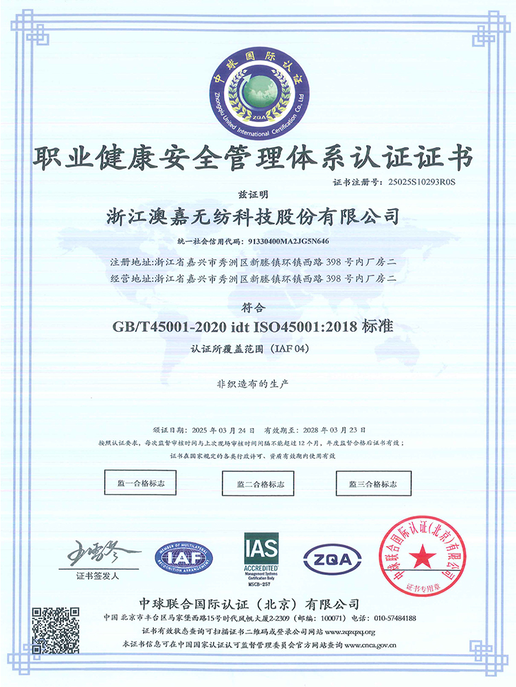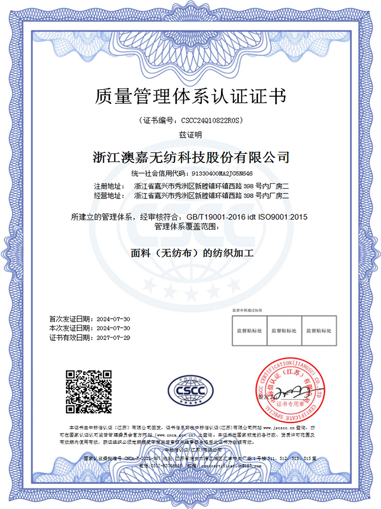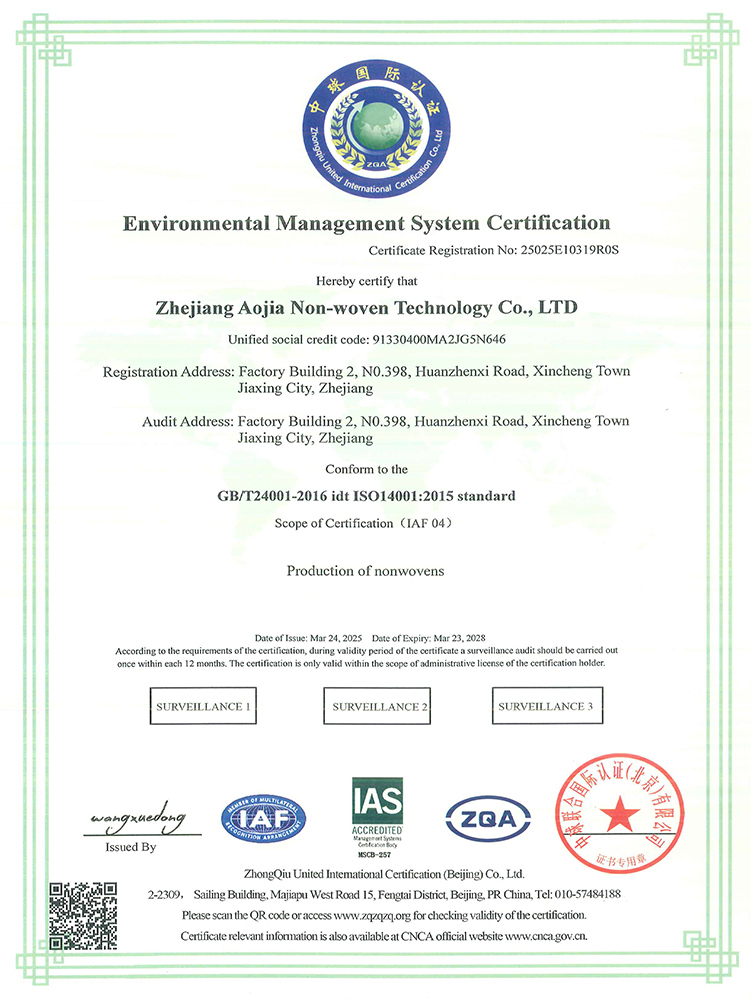 Zhejiang Aojia Nonwoven Technology Co., Ltd. is an Enterprise Specializing in the Production of Various Specifications of Nonwoven Fabric-Related Products.